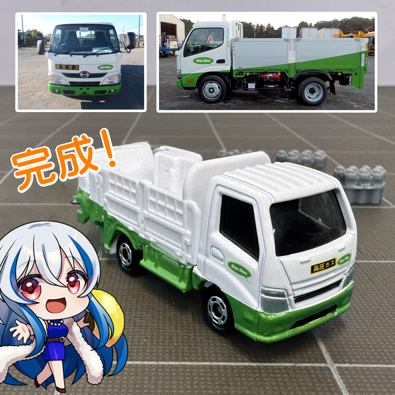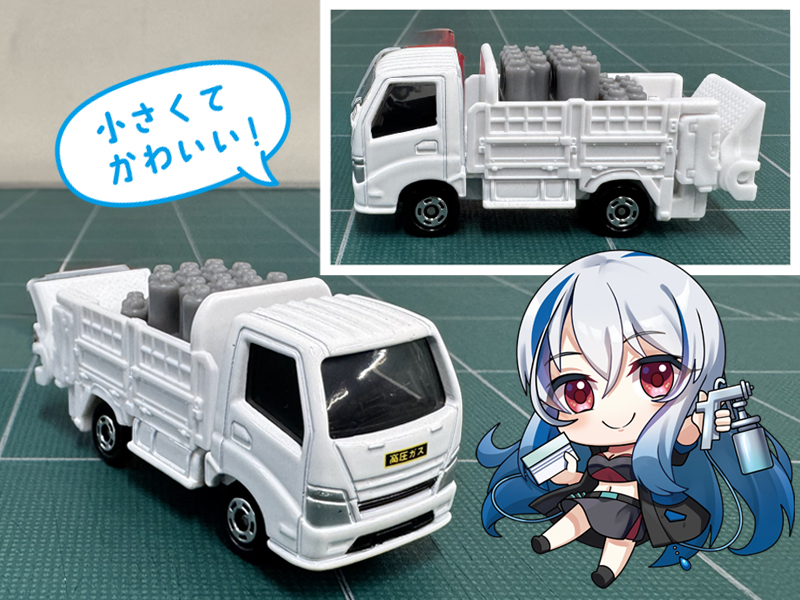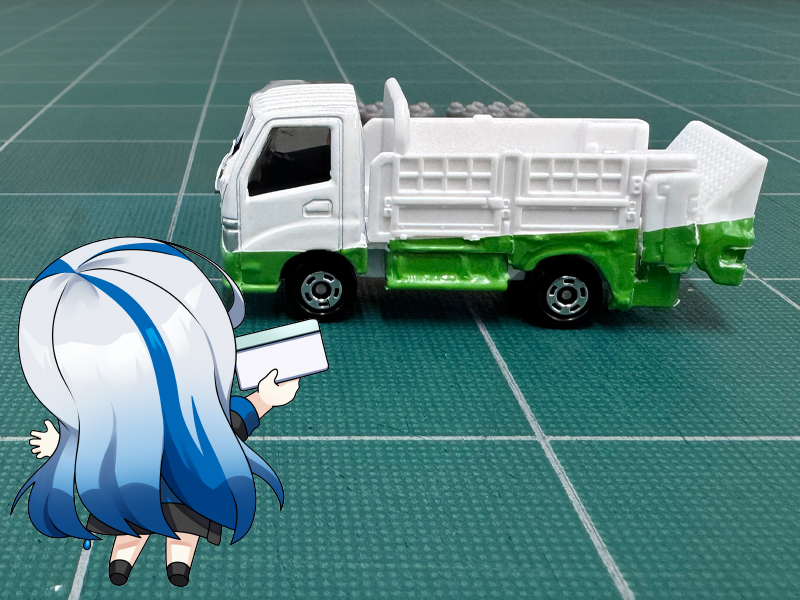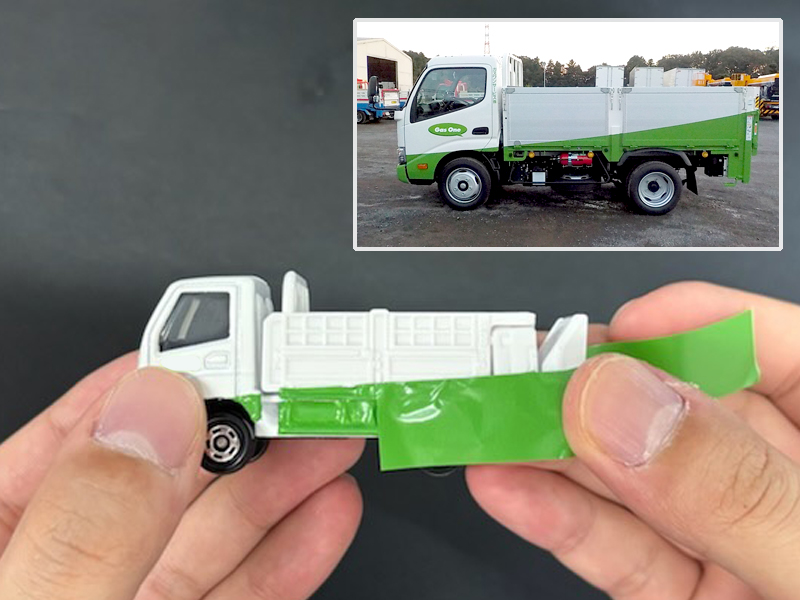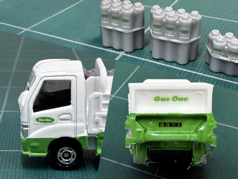 今回は、実際の配送車の塗装やステッカーも承っている『株式会社サイサン様配送車』仕様にしたから紹介するね。