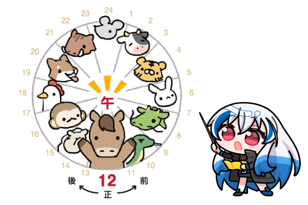 昔は1日を12の刻に分けて、十二支で数えていたんだって。