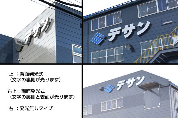 (文字の背面のみが発光します)